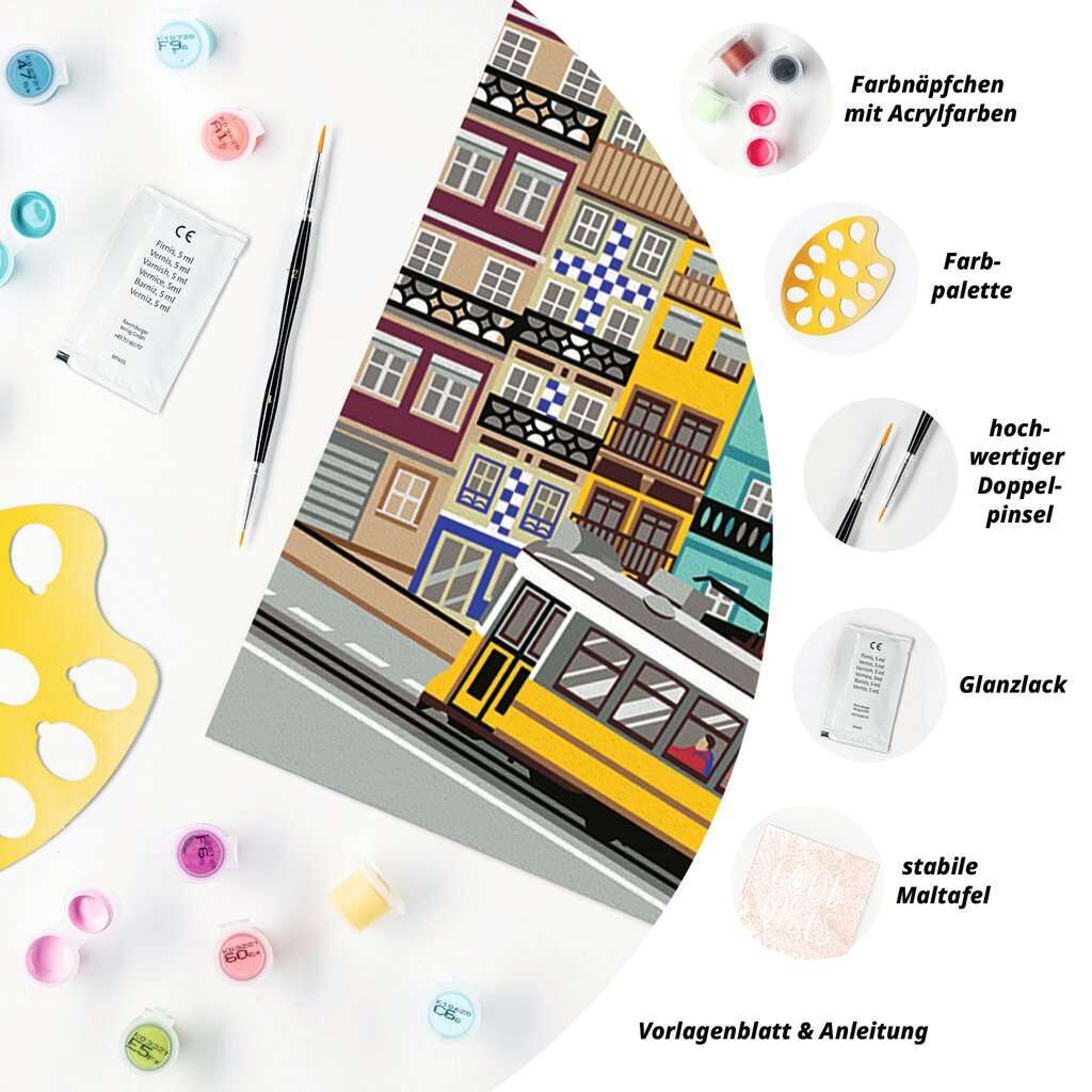 Inhalt Inhalt: Maltafel im Format 24 x 30 cm, 21 Acrylfarben auf Wasserbasis in wiederverschließbaren Näpfchen, Doppelpinsel, Farbpalette, Vorlageblatt, Glanzlack und Anleitung Ohne Rahmen!