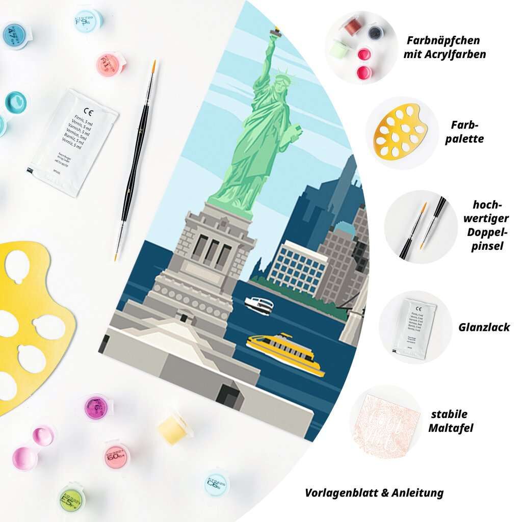 Coole Motive, leuchtende Farben und glänzender Lack für ein perfektes Finish. Das trendige Motiv Colorful New York City sorgt für großartigen Malspaß für Erwachsene ab 12 Jahren. Die Motivlinien sind bereits aufgedruckt und nummeriert und werden mit den fertig...