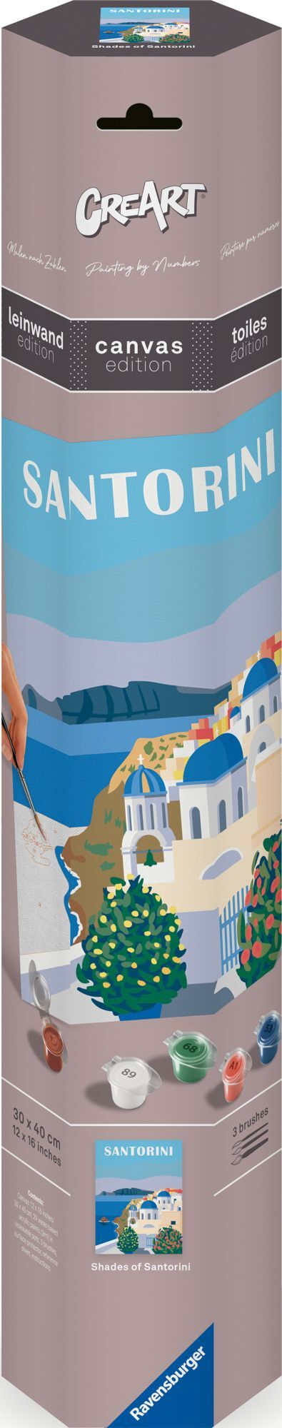 Ravensburger CreArt - Malen nach Zahlen 23906 - Farbenfrohes Santorini - ab 12 Jahren - Malen auf Leinwand Malen nach Zahlen für Erwachsene ab 12 Jahren macht auf der hochwertigen Leinwand im Format 40,00 cm x 30,00 cm besonders großen Spaß und sorgt für pure ...