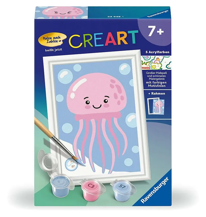 Farbige Motivlinien: Größerer Malspaß & ein schöneres Ergebnis!Dank der farbigen Motivlinien, können die Kinder das ganze Motiv Fröhliche Qualle und die Farben schneller erkennen. Der Pinsel hat eine gute Führung und so entsteht nach und nach ein perfektes Bil...