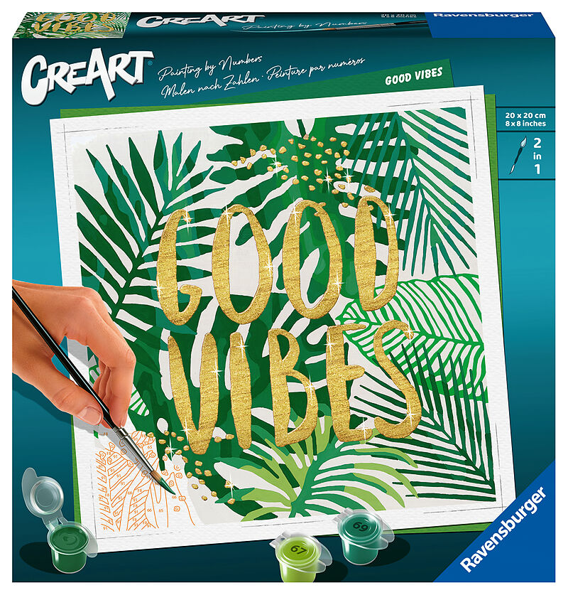 Nehmen Sie sich etwas Zeit für sich selbst und gönnen Sie sich eine unterhaltsame, entspannende Aktivität! Dieses CreArt Malen-nach-Zahlen-Set #Good Vibes# enthält alles, was Sie benötigen, um Ihr ganz persönliches Meisterwerk zu schaffen. Entspannen Sie Ihren...