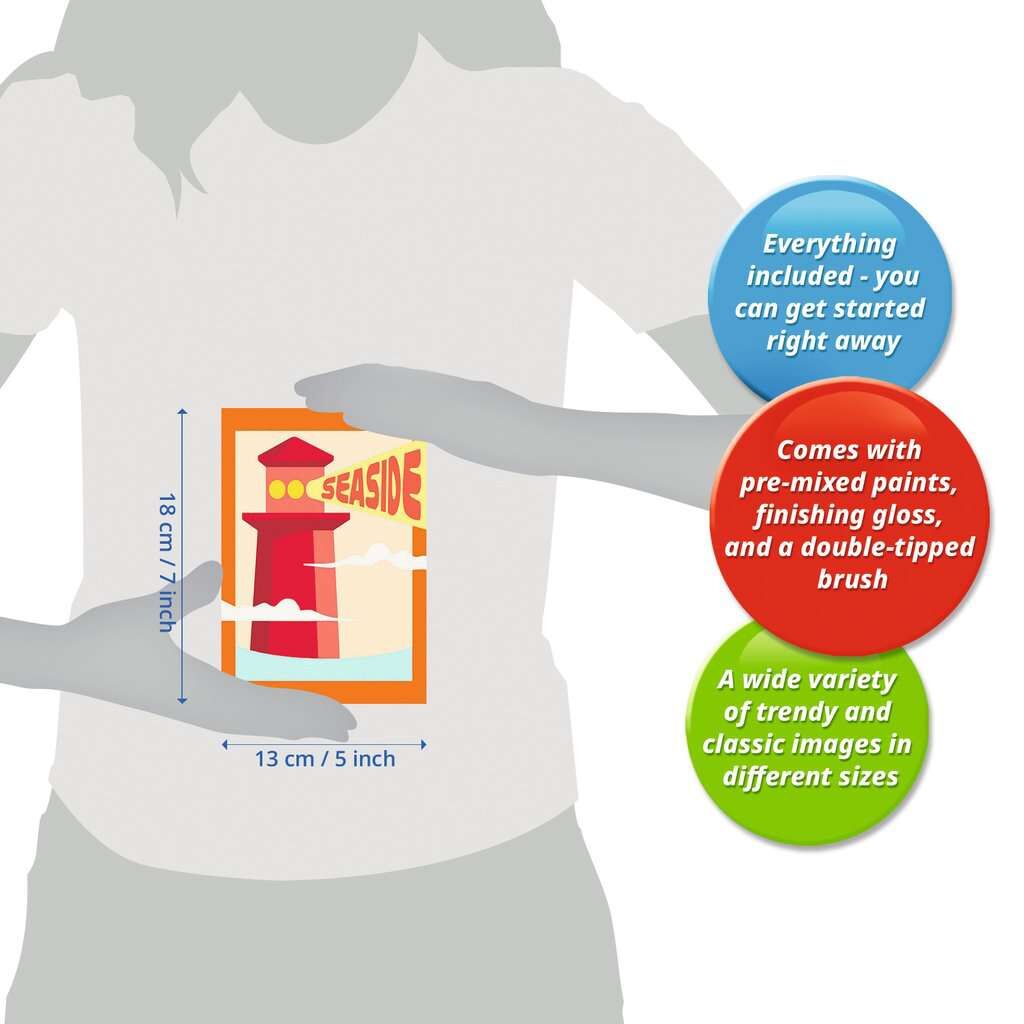 Coole Motive, leuchtende Farben und glänzender Lack für ein perfektes Finish. Das trendige Motiv Lighthouse by the Sea sorgt für großartigen Malspaß für Erwachsene ab 12 Jahren. Die Motivlinien sind bereits aufgedruckt und nummeriert und werden mit den fertig ...