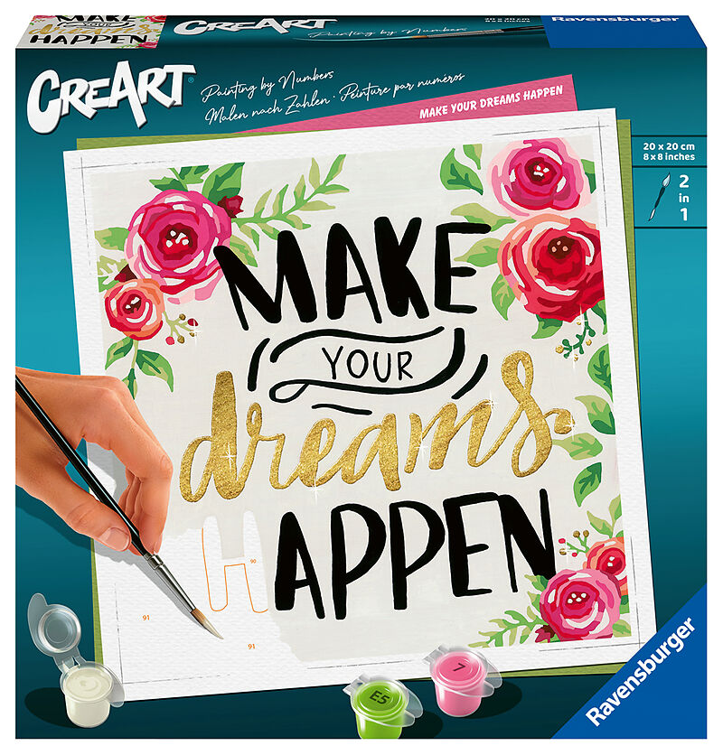Coole Motive, leuchtende Farben und glänzender Lack für ein perfektes Finish. Das coole Motiv Make your dreams happen liegt voll im Trend und sorgt für großartigen Malspaß für Erwachsene ab 12 Jahren. Die Motivlinien sind bereits aufgedruckt und nummeriert und...
