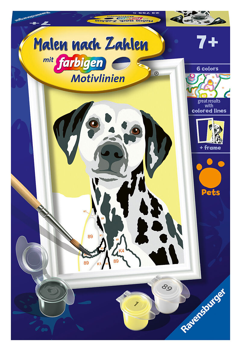 Farbige Motivlinien: Größerer Malspaß & ein schöneres Ergebnis!Dank der farbigen Motivlinien, können die Kinder das ganze Motiv Niedlicher Hund und die Farben schneller erkennen. Der Pinsel hat eine gute Führung und so entsteht nach und nach ein perfektes Bild...