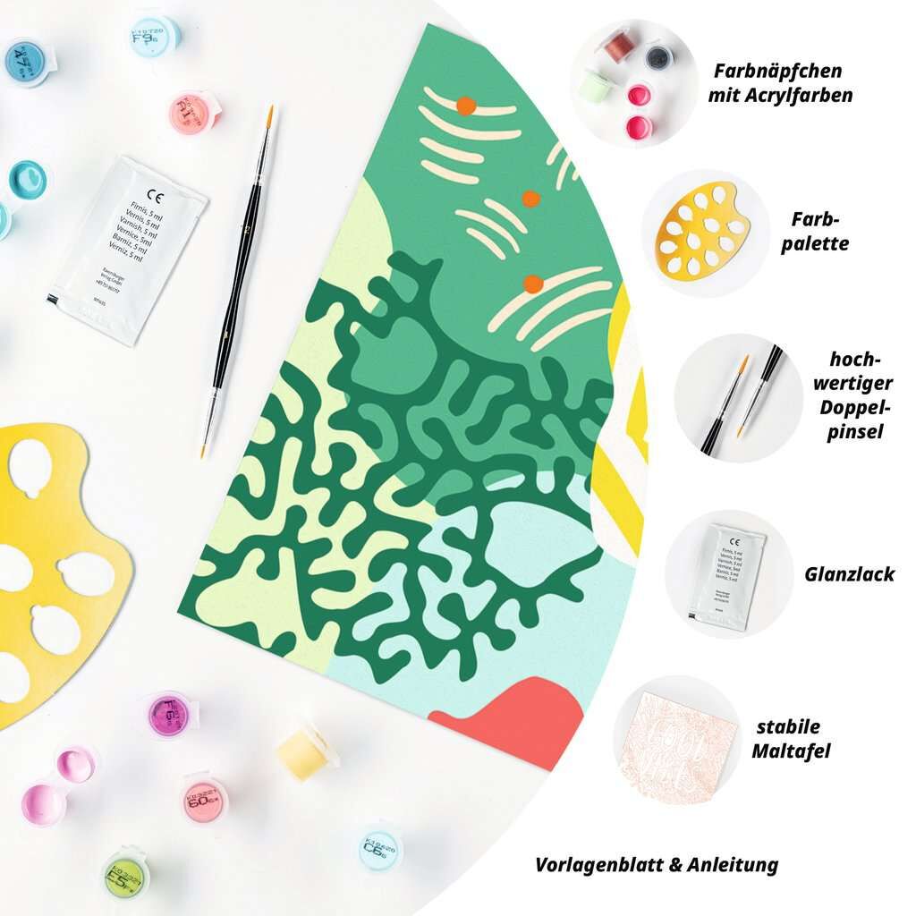 Coole Motive, leuchtende Farben und glänzender Lack für ein perfektes Finish. Das trendige Motiv Organic Vibes sorgt für großartigen Malspaß für Erwachsene ab 12 Jahren. Die Motivlinien sind bereits aufgedruckt und nummeriert und werden mit den fertig gemischt...