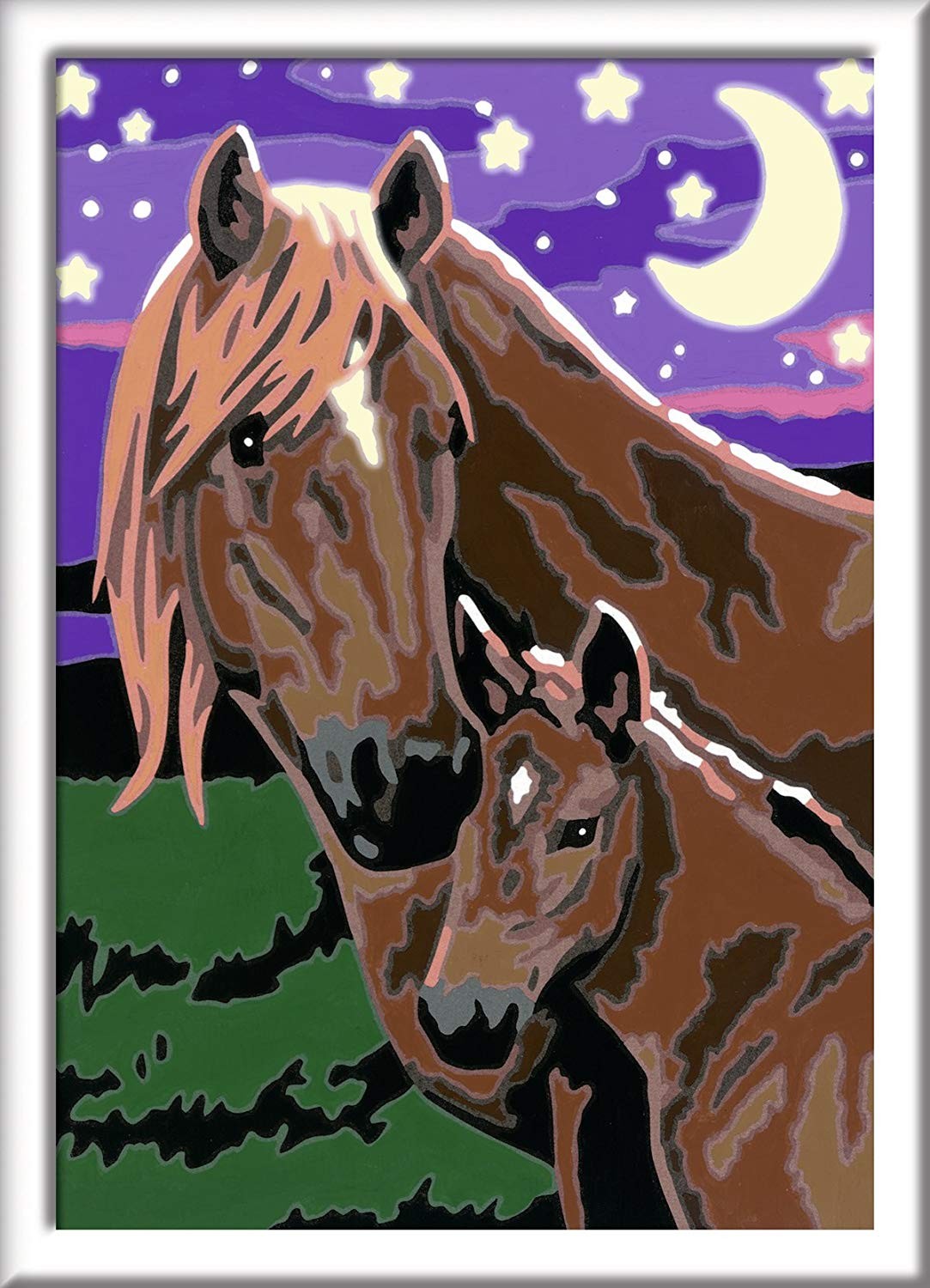 Mit Leuchtfarbe! Farbige Motivlinien: Größerer Malspaß & schöneres Ergebnis! Dank der farbigen Motivlinien, welche die Malfelder umranden, können die Kinder das ganze Motiv und die benötigten Farben schneller erkennen. Zudem hat der Pinsel eine gute Führung. S...