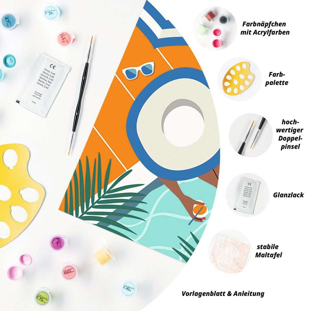 InhaltInhalt: 1 Maltafel (Format 24x30 cm), 13 Acrylfarben auf Wasserbasis in wiederverschließbaren Näpfchen, 2 Qualitätspinsel, Farbpalette, Bildaufhänger, Vorlageblatt und Anleitung.