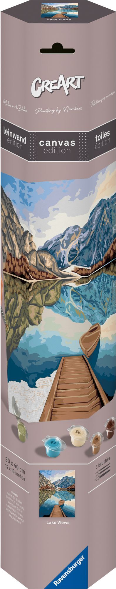 Ravensburger CreArt - Malen nach Zahlen 23909 - Seeblick - ab 12 Jahren - Malen auf Leinwand Malen nach Zahlen für Erwachsene ab 12 Jahren macht auf der hochwertigen Leinwand im Format 30,00 cm x 40,00 cm besonders großen Spaß und sorgt für pure Entspannung. D...