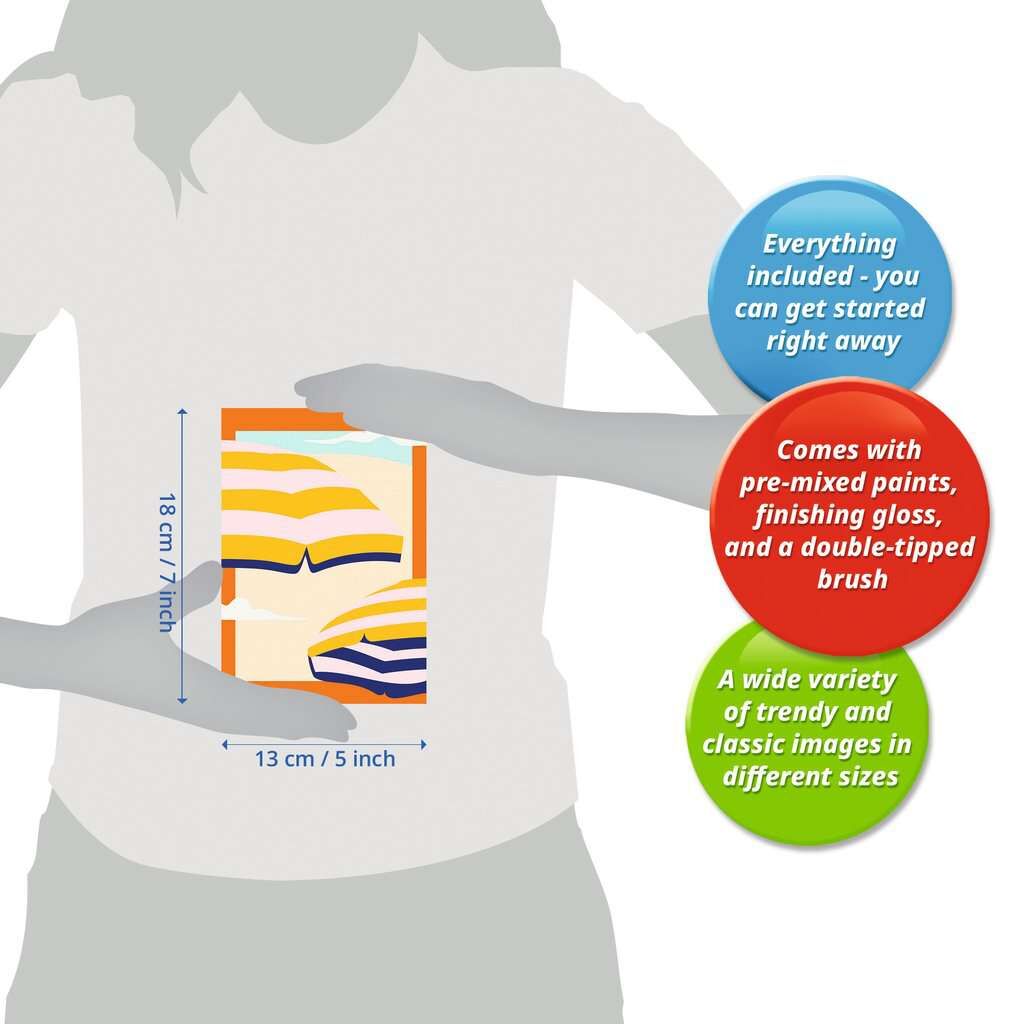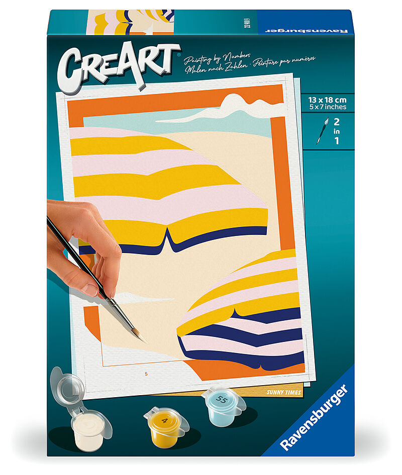 Coole Motive, leuchtende Farben und glänzender Lack für ein perfektes Finish. Das trendige Motiv Sunny Times sorgt für großartigen Malspaß für Erwachsene ab 12 Jahren. Die Motivlinien sind bereits aufgedruckt und nummeriert und werden mit den fertig gemischten...