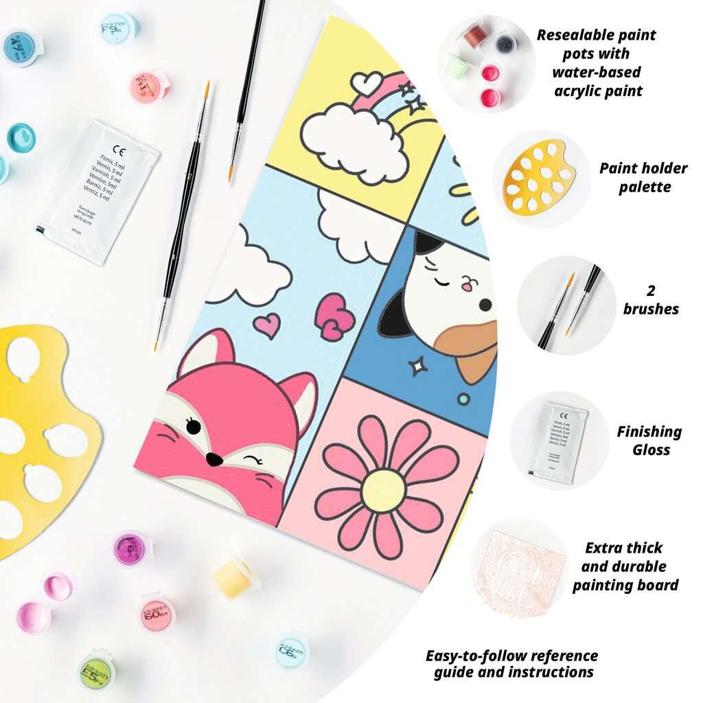 Coole Motive, leuchtende Farben und glänzender Lack für ein perfektes Finish. Das trendige Motiv Squishmallows sorgt für großartigen Malspaß für Erwachsene ab 12 Jahren. Die Motivlinien sind bereits aufgedruckt und nummeriert und werden mit den fertig gemischt...