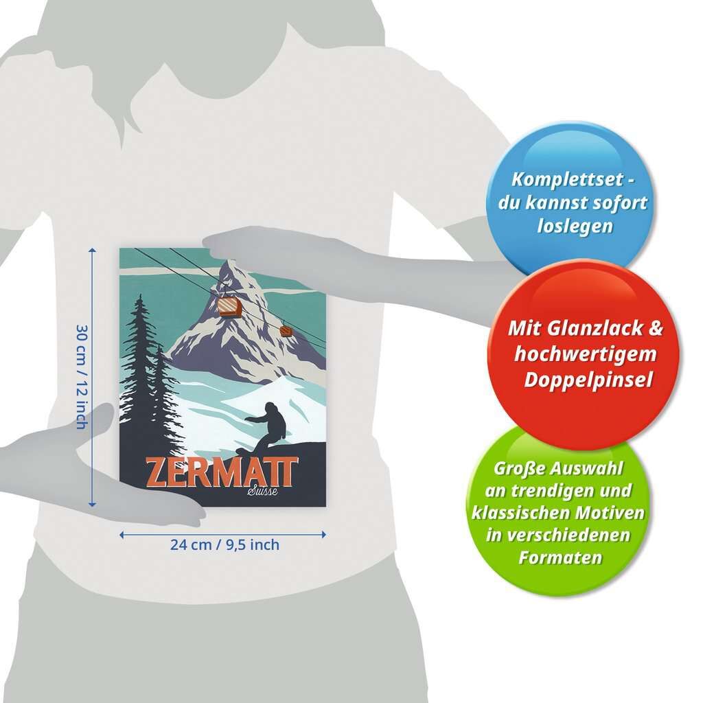 Stellen Sie sich vor, Sie snowboarden das Matterhorn hinunter, oder malen Sie einfach diese coole, stilisierte Szene aus #Zermatt# mit unserem CreArt Malen nach Zahlen-Set! Gönnen Sie sich eine entspannte Auszeit mit allem, was Sie dafür brauchen. Füllen Sie e...