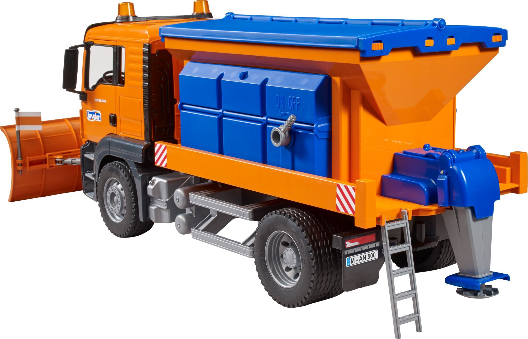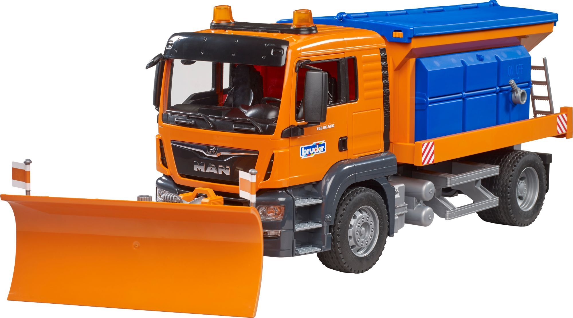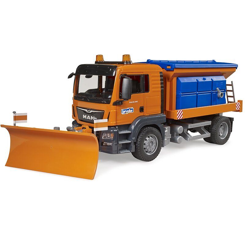 Bruder 03785 MAN TGS Winterdienst mit Räumschild ... starker Schneefall bis in flache Lagen..., sobald der Verkehrsfunk diese Meldung bringt sind die Räumfahrzeuge im Einsatz und das rund um die Uhr. BRUDER, bekannt für seine realistischen und allwettertauglic...