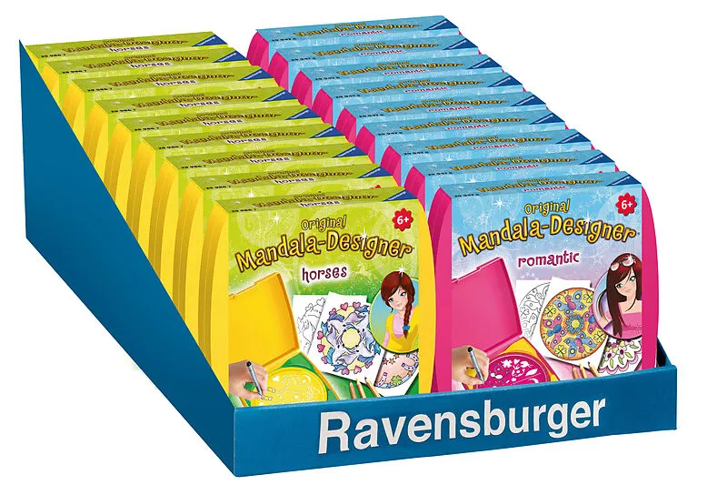 Mit dem Mandala Designer Mini von Ravensburger können Kinder ab 6 Jahren mit Hilfe der Schablone kleine Mandalas auch von unterwegs aus selbst entwerfen.Ganz einfach Zeichnen lernen und mit den Lieblingsfarben die schönen Pferdemotive ausmalen. Das gesamte Set...