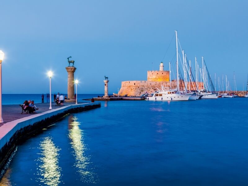 Entdecken Sie die Insel Rhodos in der Ägäis. Das malerische Lindos mit seiner Akropolis, die pulsierende Altstadt von Rhodos Stadt. Den Kurpark Kallithea, einst ein Thermalbad. Lachania, ein pittoreskes Dorf ganz im Süden der Insel. Den Mandraki-Hafen, zusamme...