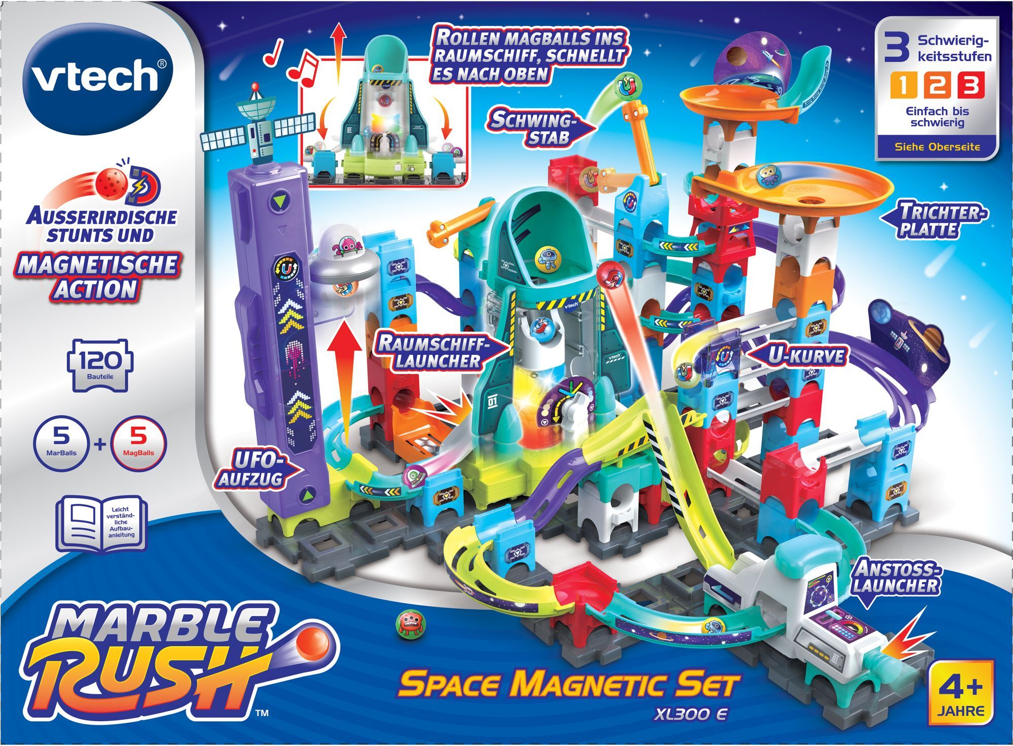 Marble Rush - Space Magnetic Set XL300 E Marble Rush - interaktive Kugelbahnen. Interaktives Kugelbahn-Set - Magnetic Power Set mit 119 Bauteilen, 1 elektronischen Einheit, 5 MarBalls (Kugeln) und 5 magnetischen MarBalls. Unzählige Aufbaumöglichkeiten und Wegf...