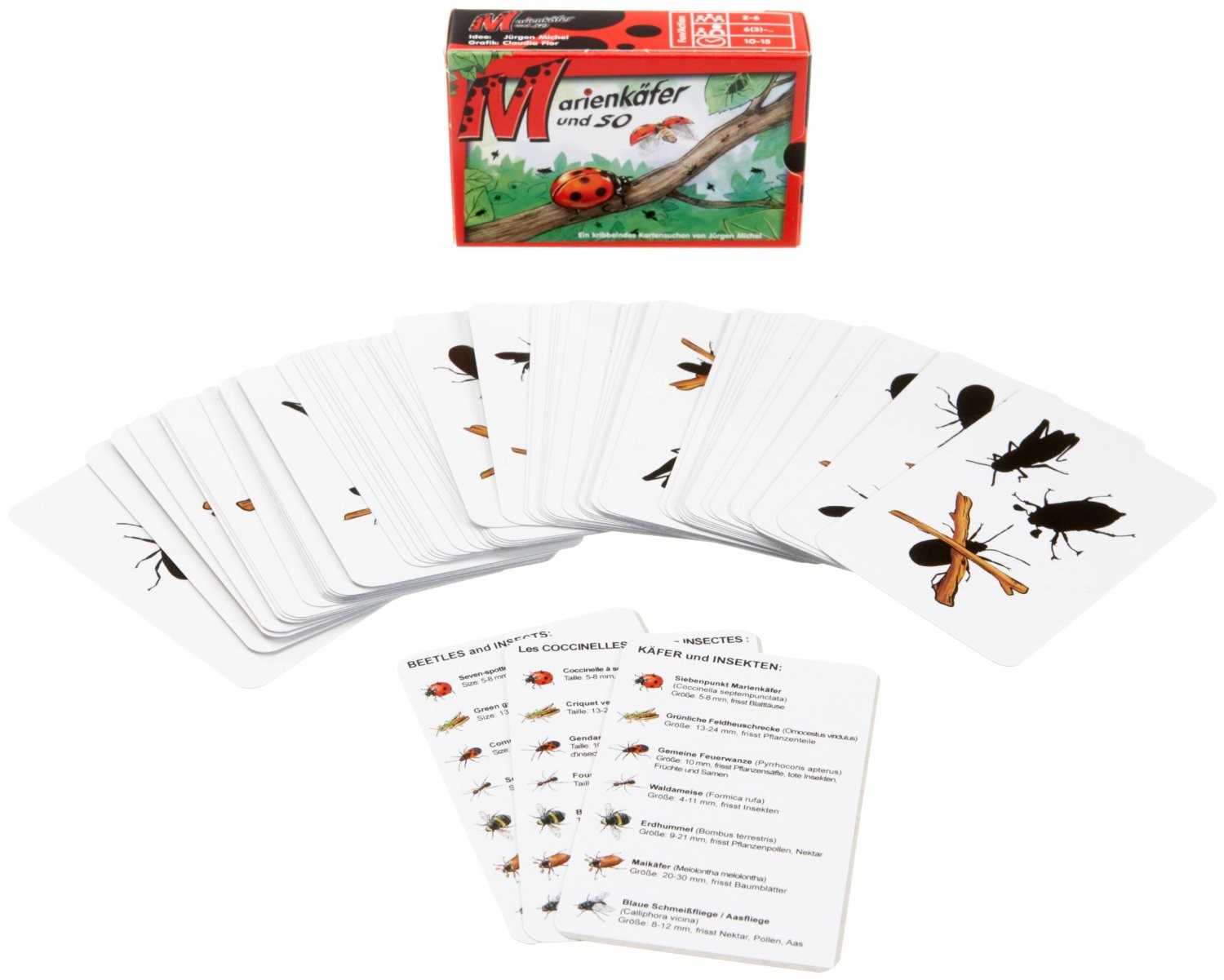 Welcher Käfer oder so verbirgt sich hinter dem schwarzen Umriss? Marienkäfer und so krabbeln über die Karten. Suche sie mit Hilfe ihrer Umrisse und sei schneller als die anderen. Aber Vorsicht, denn schnell klopft man falsch, da man das durchgestrichene Insekt...