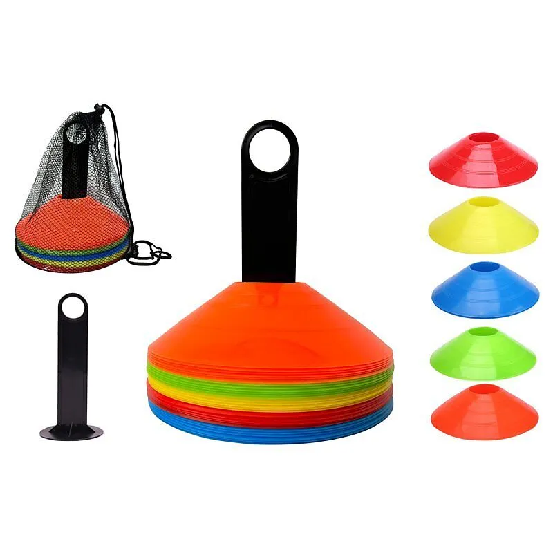Markierungspylonen mehrfarbig, 30 Hüte aus flexiblem PE Kunststoff, Stück: 22x9cm, 22g, im praktischen Netz. Höhe 9.5x21cm.