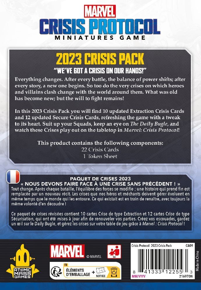 Der Krisen-Kartenpack 2023 "Uns steht eine Krise bevor" enthält Kopien der 6 Krisenkarten aus dem Grundspiel Die Mächtigsten der Welt für Marvel: Crisis Protocol sowie 7 brandneue Evakuierungskrisen und 9 brandneue Sicherungskrisen, die für überrasch...
