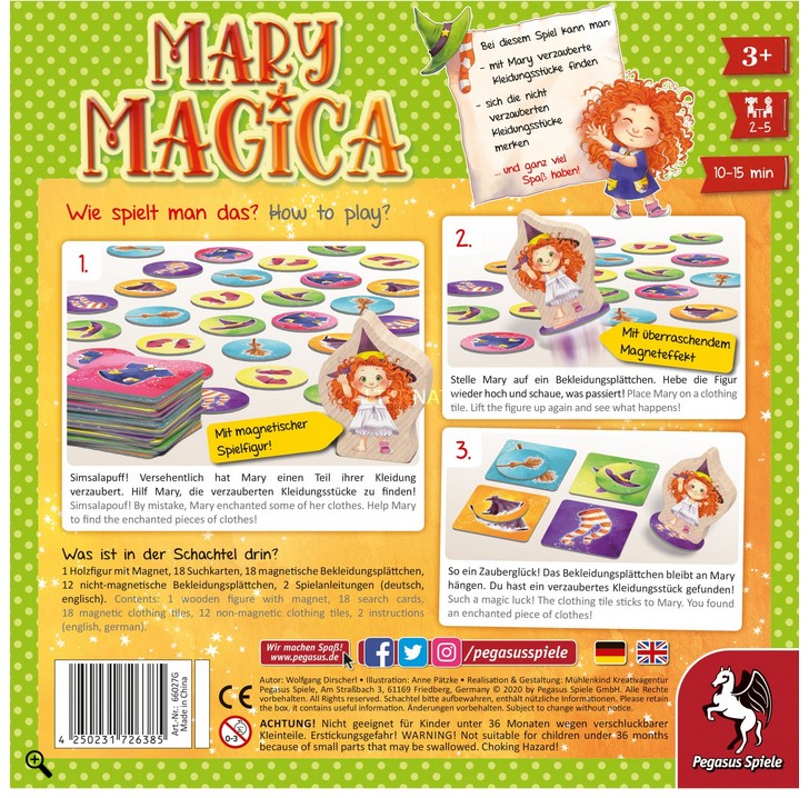Eigentlich soll sich die kleine Mary nur anziehen. Doch stattdessen übt sie viel lieber Zaubern. Und schwuppdiwupp wirbeln Besen und Hut und Kleid durch die Luft. Was für ein Spaß! Doch auf einmal ist Marys ganzes Kinderzimmer voller Kleidungsstücke. Wie soll ...