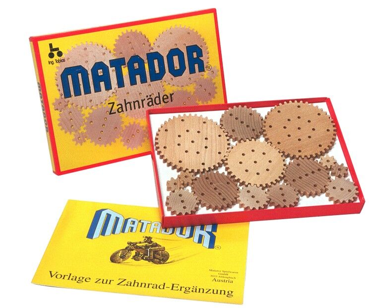 Die Zahnräder stellen eine wertvolle Erweiterung für das restliche Matadorprogramm dar. Die Bauanleitung bietet Konstruktionsmöglichkeiten passend zu den Matador- Kästen E100 bis E500. - ab 5 Jahren - stabil und langlebig - 100% österreichisches Holz, 100% Mad...
