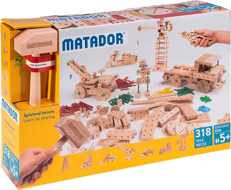 Matador Explorer Baukasten 318 Teile Bau dir deine eigene Matador Harley und cruise durch die Landschaft, hämmere an deinem Kran und belade dein selbstgebautes Lastauto, oder baue frei nach Fantasie! Nichts ist so förderlich für die gesunde Entwicklung von Kin...