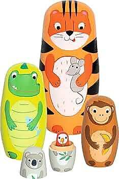 Matroschka-Puppen üben seit jahrhunderten eine ganz eigene Faszination auf Kinder und Erwachsene aus. Und mit dem liebevoll-bunten Tierdesign macht das Ineinander-Stapeln gleich doppelt so viel Spaß! Klassisches Stapelspiel: Die goki Matroschka aus Holz umfass...