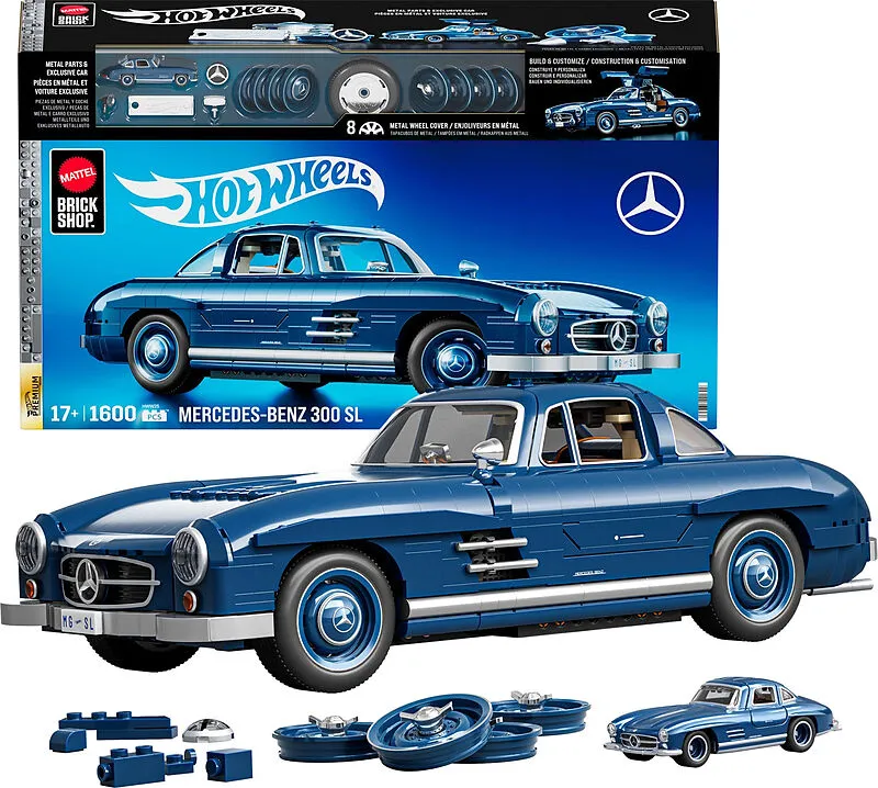 MEGA Showcase Hot Wheels Mercedes-Benz 300SL Eleganz pur: Der Mercedes-Benz 300 SL ist eine Ikone unter den Oldtimern jetzt zum Selberbauen mit Mattel Brick Shop. Dieses detailreiche und authentische Set im Maßstab 1:12 enthält Metallteile, einen Ersatzreifen ...