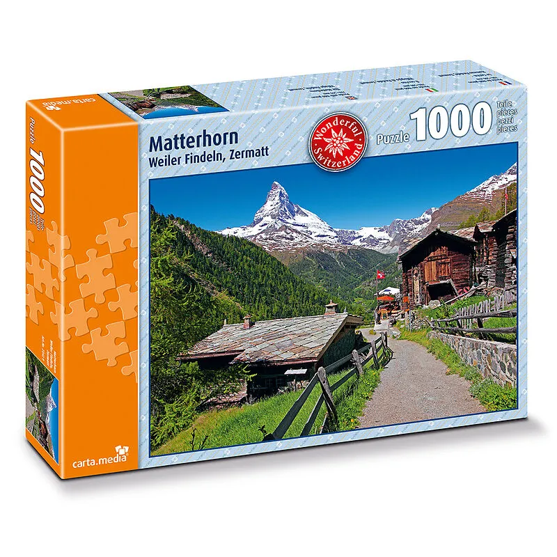 Puzzle mit 1000 Teilen mit Matterhorn, Weiler Findeln und Zermatt.Puzzleformat: 70 x 50 cm