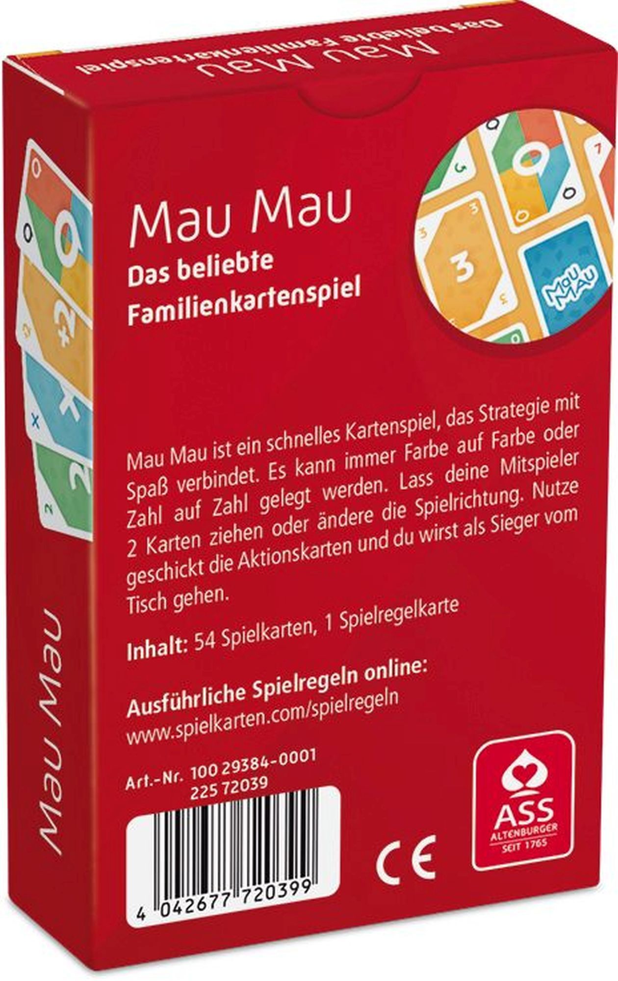 Das grenzenlos verrückte Spiel für Jung und Alt: Mau Mau ist eines der beliebtesten Kartenspiele der Welt. Es muss immer eine farblich oder zahlenmäßig passende Karte gelegt werden. Sonderkarten wie Zwei ziehen, Farbenwunsch oder Aussetzen beeinflussen den Spi...