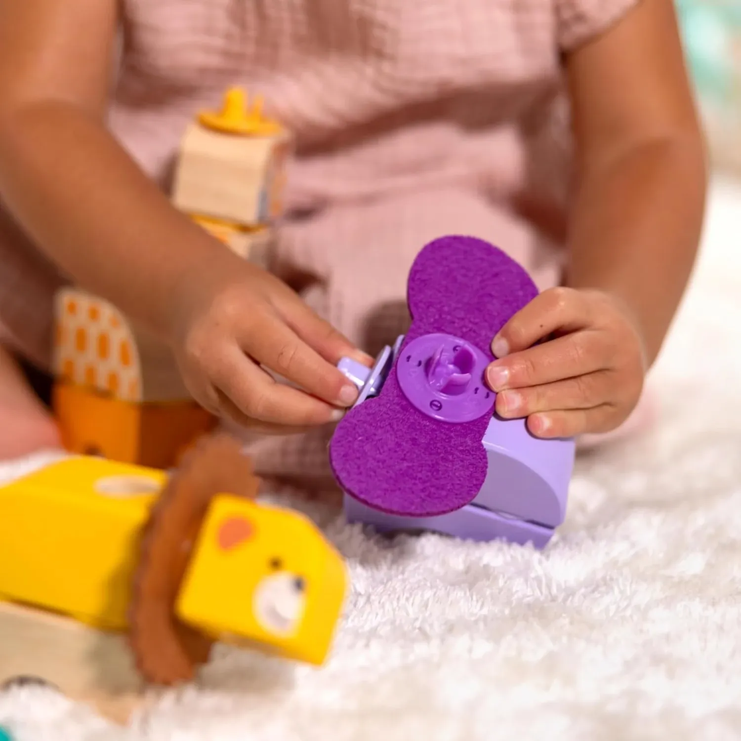 Mit diesem 34-teiligen Wildtier-Set entstehen aus bunten Holzblöcken, Filzstücken und praktischen Steckverbindungen wunderschöne Tiere, denen man auf einer Safari oder im Zoo begegnen könnte. So zum Beispiel ein Zebra, ein Löwe, ein Krokodil, eine Giraffe und ...