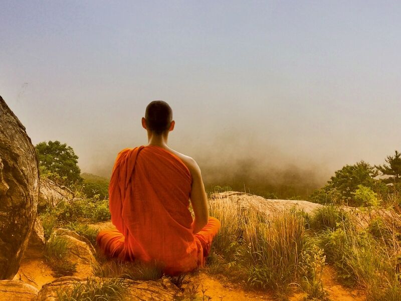 Der Ausblick, die Ruhe an abgeschiedenen Bergorten, ist ein guter Einstieg für eine Meditation. Absolut schön und erhaben präsentieren sich dieses Bild mit ihren meditierenden Mönch.