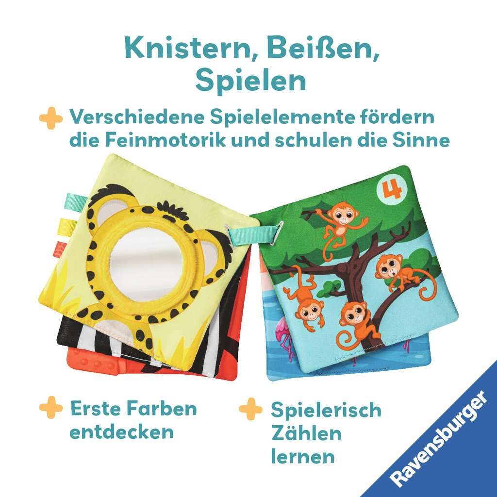 Ravensburger 4854 Play+ Mein allererstes Spielbuch: Zahlen und Farben, Stoffbuch, Kuschelbuch, Baby-Spielzeug ab 6 Mon Diese spannenden Stoffkarten für Babys ab 6 Monaten bieten - einzeln oder in Kombination mit Clip - jede Menge Entdeckerspaß. Hergestellt aus...
