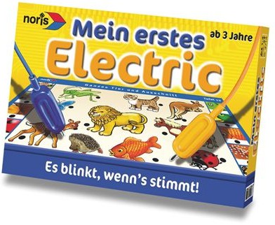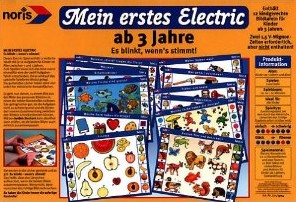 Es blinkt - wenn's stimmt! Das Kind sucht sich eine der zwölf Aufgaben-Tafeln aus und legt sie auf das Spielbrett-Modul. Die gestanzten Löcher haben dann von unten her elektrische Kontaktflächen. Es geht nun darum, zu einem Bild aus der Mitte ein passende...