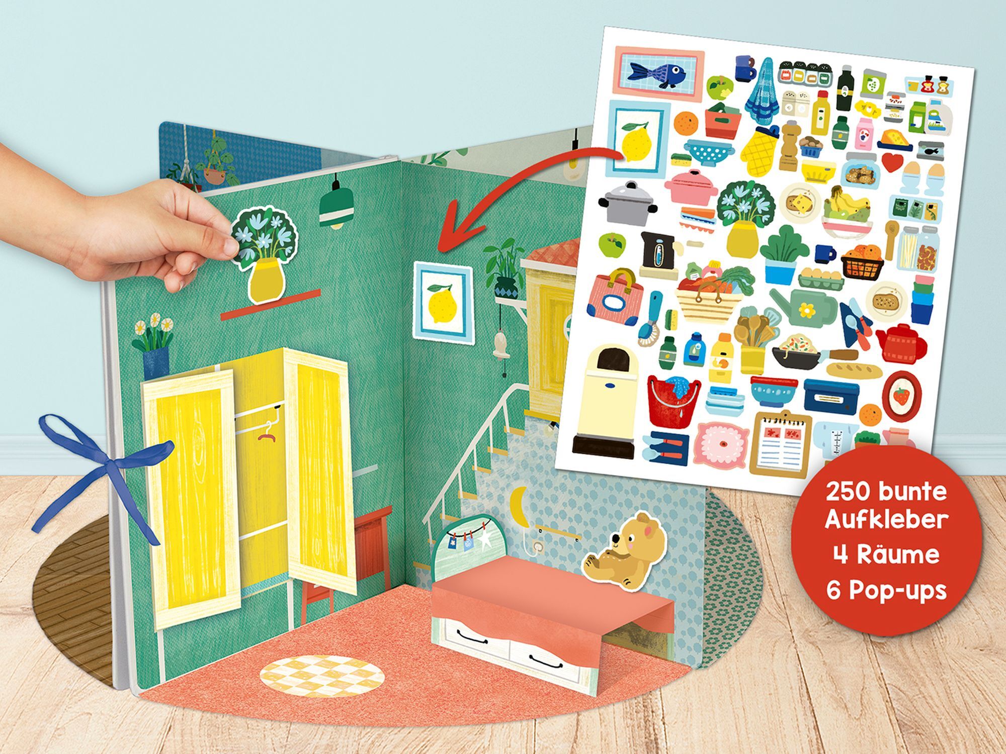 Mein großes Sticker-Spielhaus Einrichten und losspielen! Das große Sticker-Spielhaus für Kinder ab 4 Jahren ist eine geniale Kombination aus Puppenhaus und Stickerheft. Es lässt sich ganz unkompliziert aufstellen, so dass 4 dreidimensionale Räume entstehen. Mi...