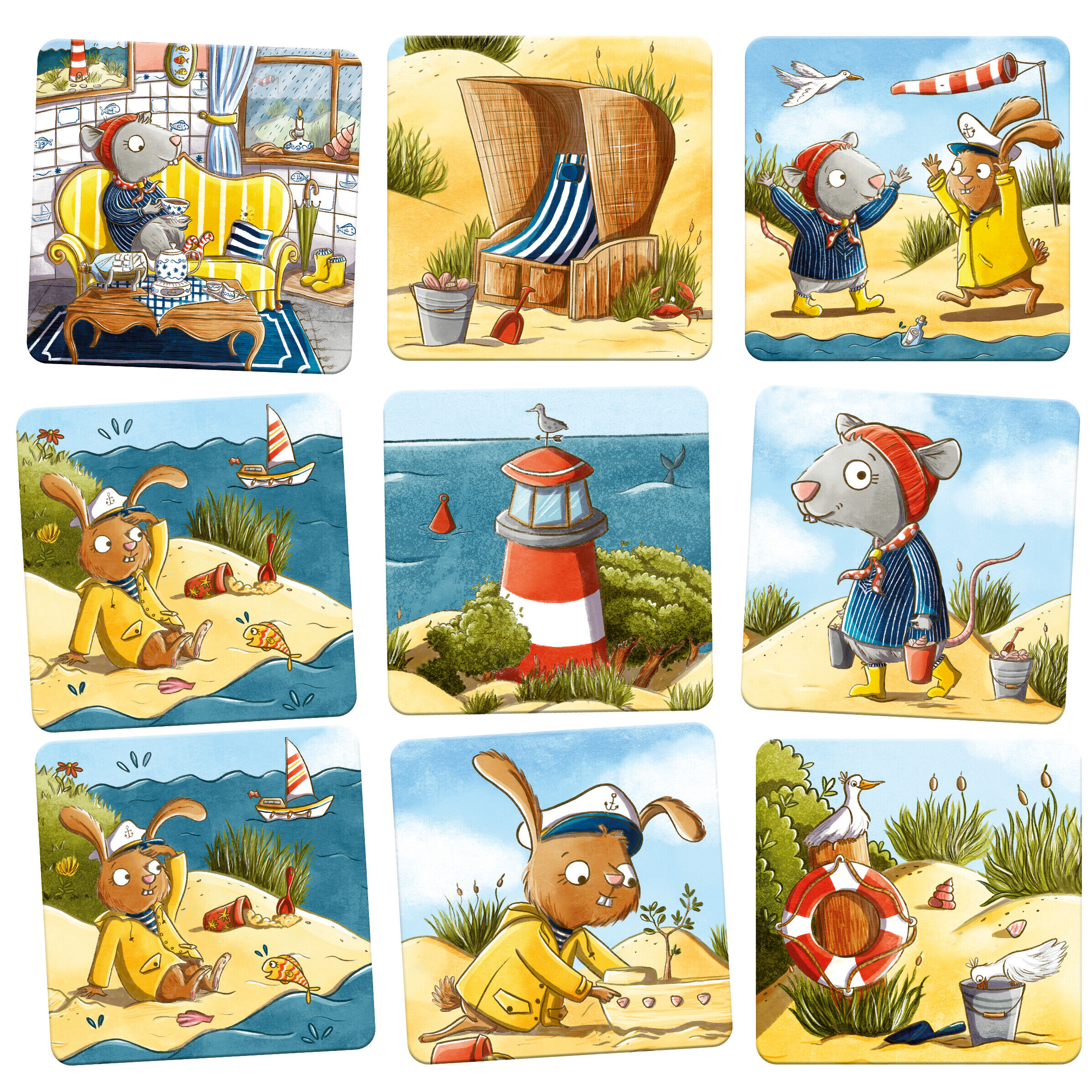 Memo-Spielspaß mit Strandfeeling Ab ans Meer Wer findet die Sandburg, den Strandkorb oder den Leuchtturm? Dieses Memo-Spiel mit extragroßen Karten fördert die Feinmotorik von Kindern und lehrt Konzentration und logisches Denken. Es gewinnt, wer am Ende die me...