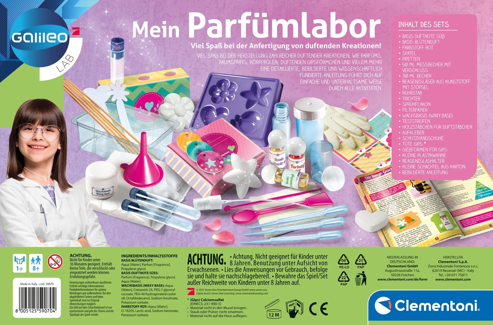Clementoni Galileo- Mein Parfümlabor Ein echtes Forschungslabor mit dem sich wunderbare Parfümkreationen herstellen lassen! Das Kit enthält Essenzen und Zutaten, die die Kreativität bei Jungs und Mädchen stimulieren. Im ausführlichen Handbuch sind sehr viele V...