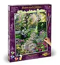 Der Garten ist eine Wohlfühloase im Alltagstrubel. Die stilvolle Bank im Vordergrund des Bildes ist eingebettet in ein farbenprächtiges Blütenmeer. Der Ort strahlt Ruhe aus und lädt zugleich zum Verweilen ein. Ein sanft gewundener Weg führt durch ein Rosenspal...
