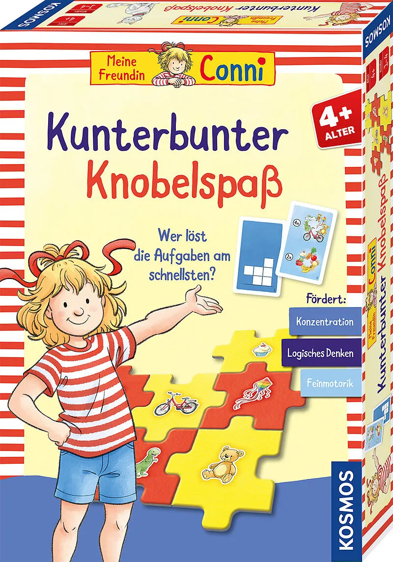 Spielspaß mit Conni und Kater Mau wer löst die kniffligen Knobeleien auf den Karten am schnellsten? Hmmmal überlegenwie können die Puzzleteile geschickt und schnell zusammengelegt werden? Spielerisch räumliches und logisches Denken fördern beim Spielen mit Con...