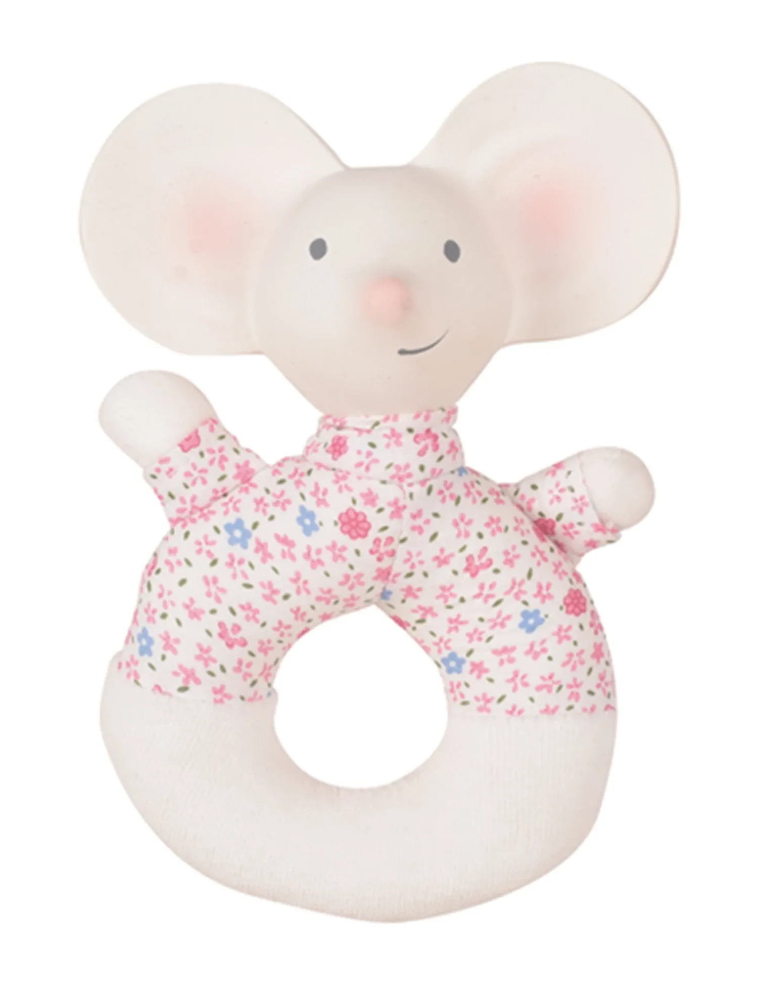 Die Meiya Babyrassel erzeugt sanfte Geräusche, fördert die Motorik des Kindes und ist für kleine Kinderhände einfach zu greifen. Der Rasselkopf besteht aus Naturkautschuk und ist somit ideal für die Zahnungsphase. - Der Kopf ist hergestellt aus 100% Naturkauts...