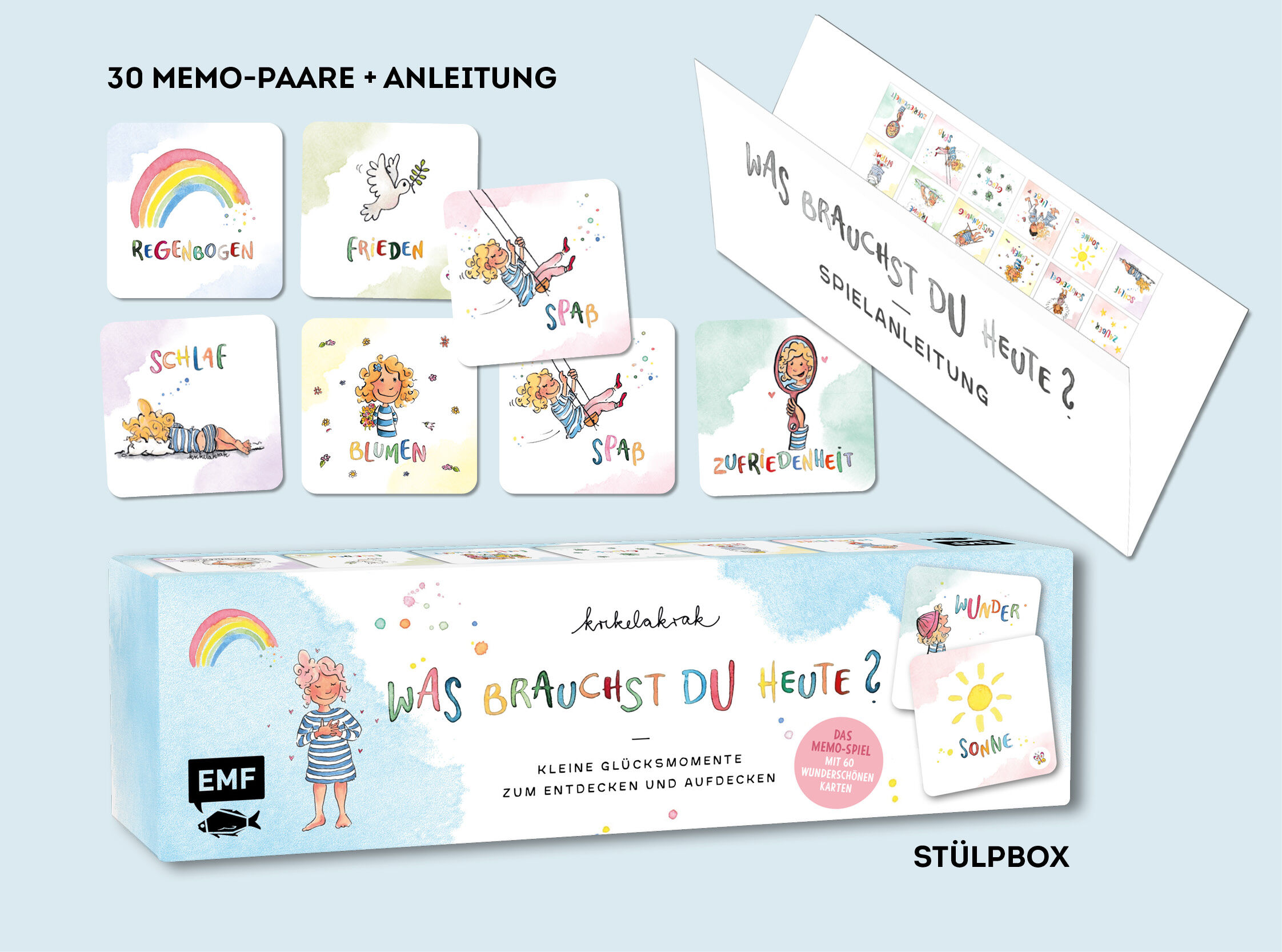Das einzigartige Memo-Spiel für mehr Glücksmomente im Leben - von der reichweitenstarken Bloggerin krikelakrak! Was brauchst du heute? Eine Umarmung? Etwas innere Ruhe? Oder etwa Mut? Mit diesem liebevoll illustrierten Memo-Spiel kannst du jeden Tag genau das...