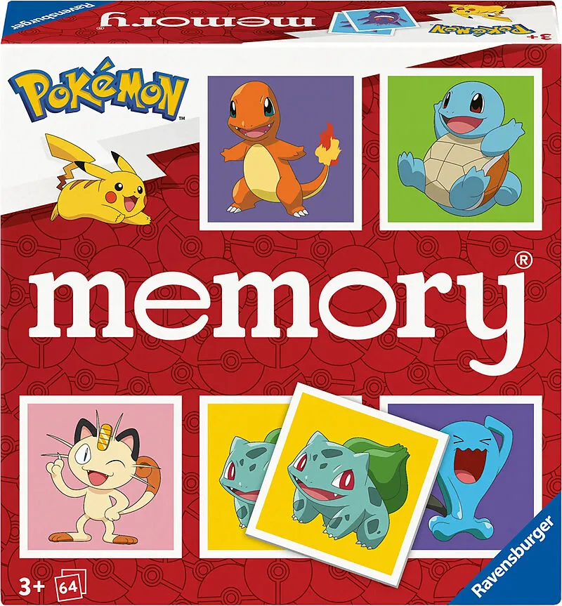 Ravensburger 24853 memory® Pokémon - Das weltbekannte Gedächtnisspiel mit 32 Kartenpaaren, für 2-8 Pokémon-Fans ab 3 Der weltbekannte Merkspiele-Klassiker memory® jetzt mit den beliebtesten Pokémon Charakteren. Wer sich gut merken kann, unter welchen Karten si...