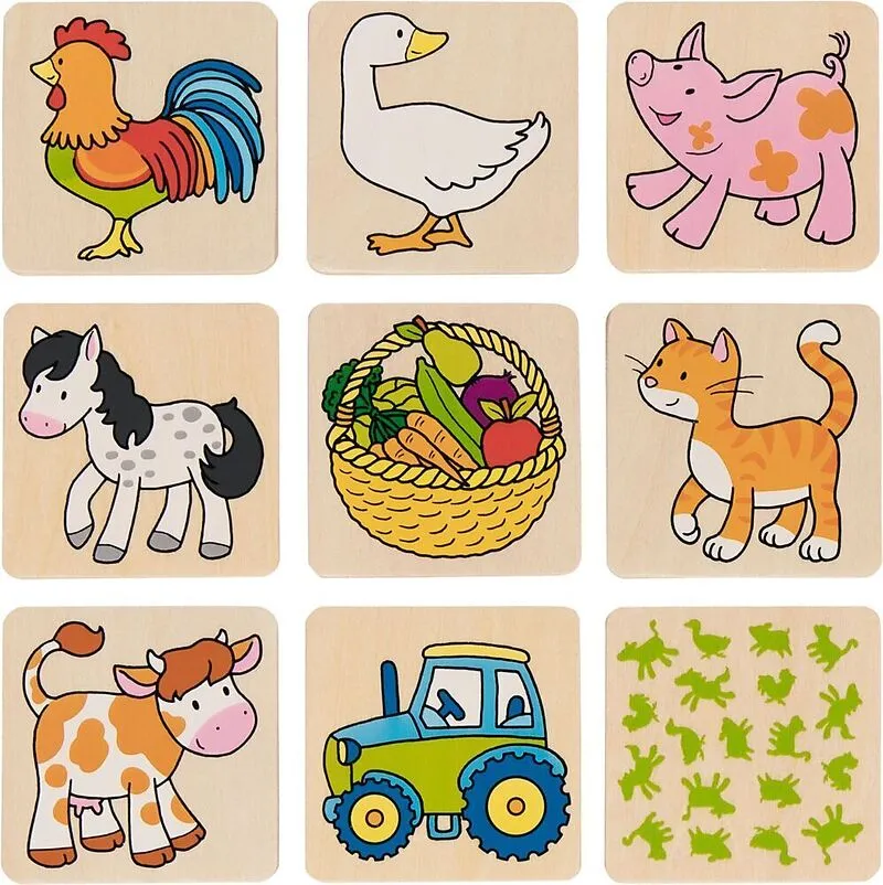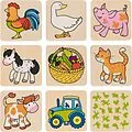 Das Memospiel besteht aus 16 Holzkarten zu 8 Bildpaaren.