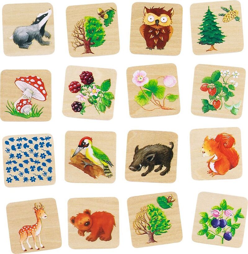 Wer findet die meisten Pärchen? Hier ist das Erinnerungsvermögen gefragt. Nebenbei lernt ihr, was es alles in einem Wald zu entdecken gibt.