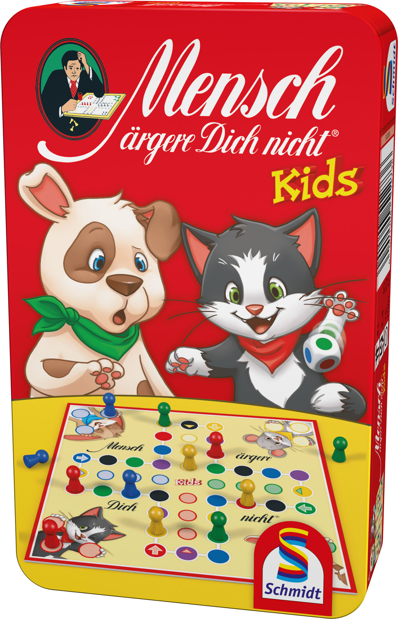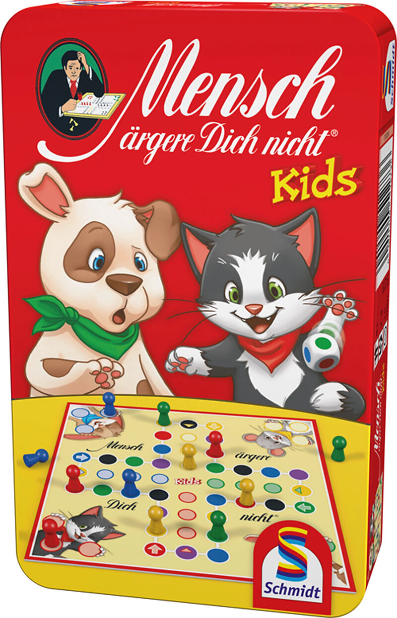 Schmidt Spiele Mensch ärgere dich nicht Kids Mitbrinspiel in der Metalldose Mit der kindgerechten Farbversion können schon Kinder ab 4 Jahren MENSCH ÄRGERE DICH NICHT problemlos spielen. Und zählen können muss man auch noch nicht, um seine Spielfiguren als Ers...