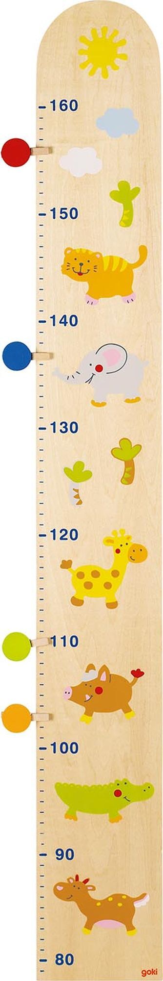 Bunte Holzmesslatte mit hübschen Tiermotiven. So kann jeder seine Körpergröße selbst messen. Auch als Wanddeko geeignet. Länge ca. 92 cm, aus Holz, inklusive 4 Klammern. Ab 0 Monaten.