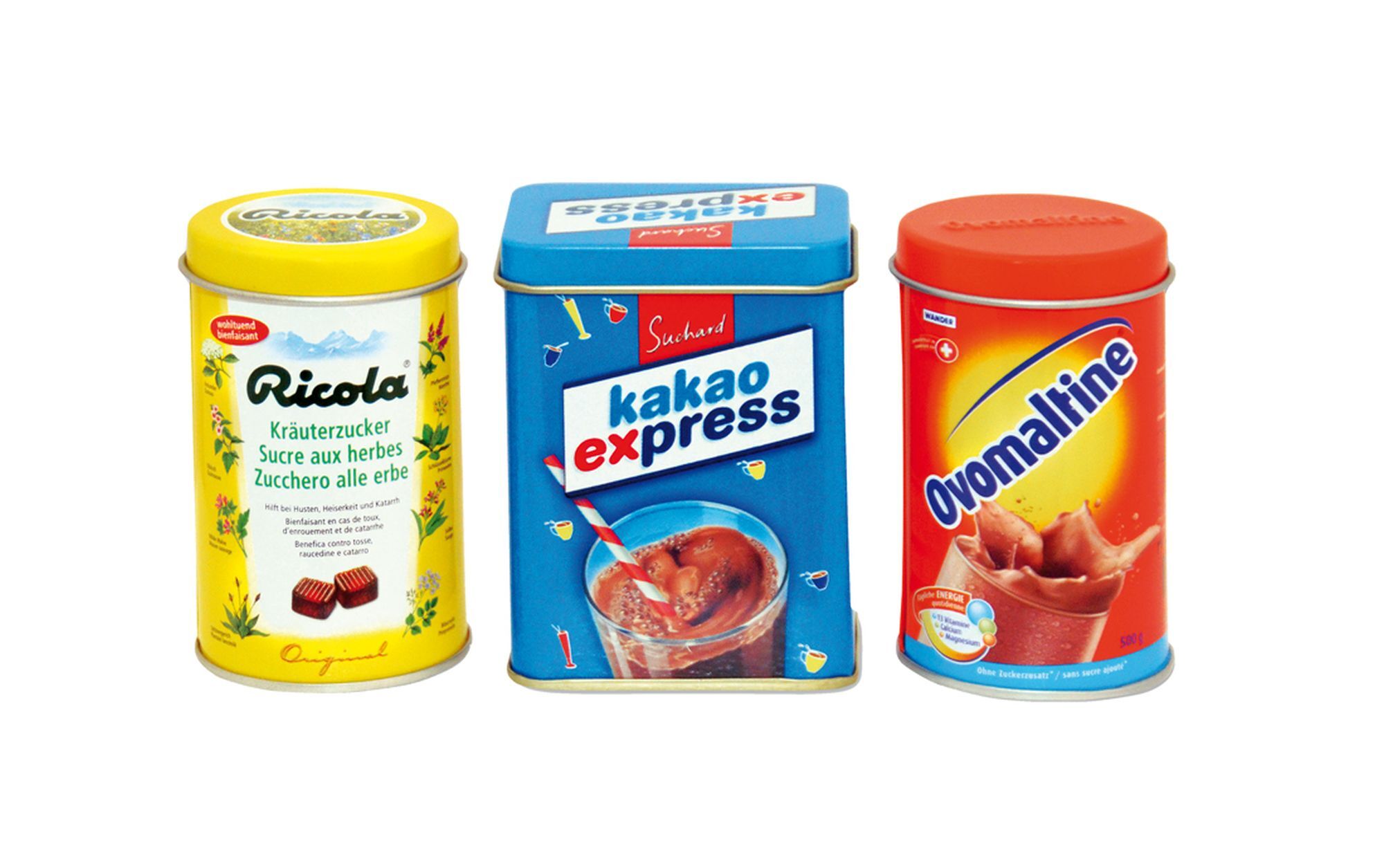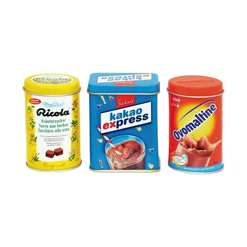 Metalldosen Set 3 Stk, bestehend aus Ricola, Kakao und Ovomaltine.
