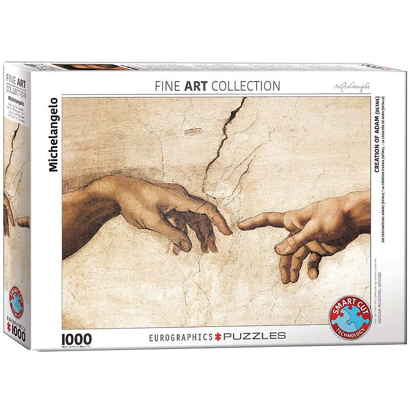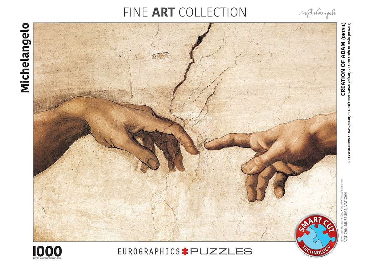 Die Erschaffung Adams (Detail) von Michelangelo Smart-Cut Technology ist ein innovativer Herstellungsprozess, der das Stanzen von einzigartigen Puzzleteilformen mit perfekter Passgenauigkeit erlaubt. Wie bei Schneeflocken gibt es keine zwei Stücke, die gleich ...