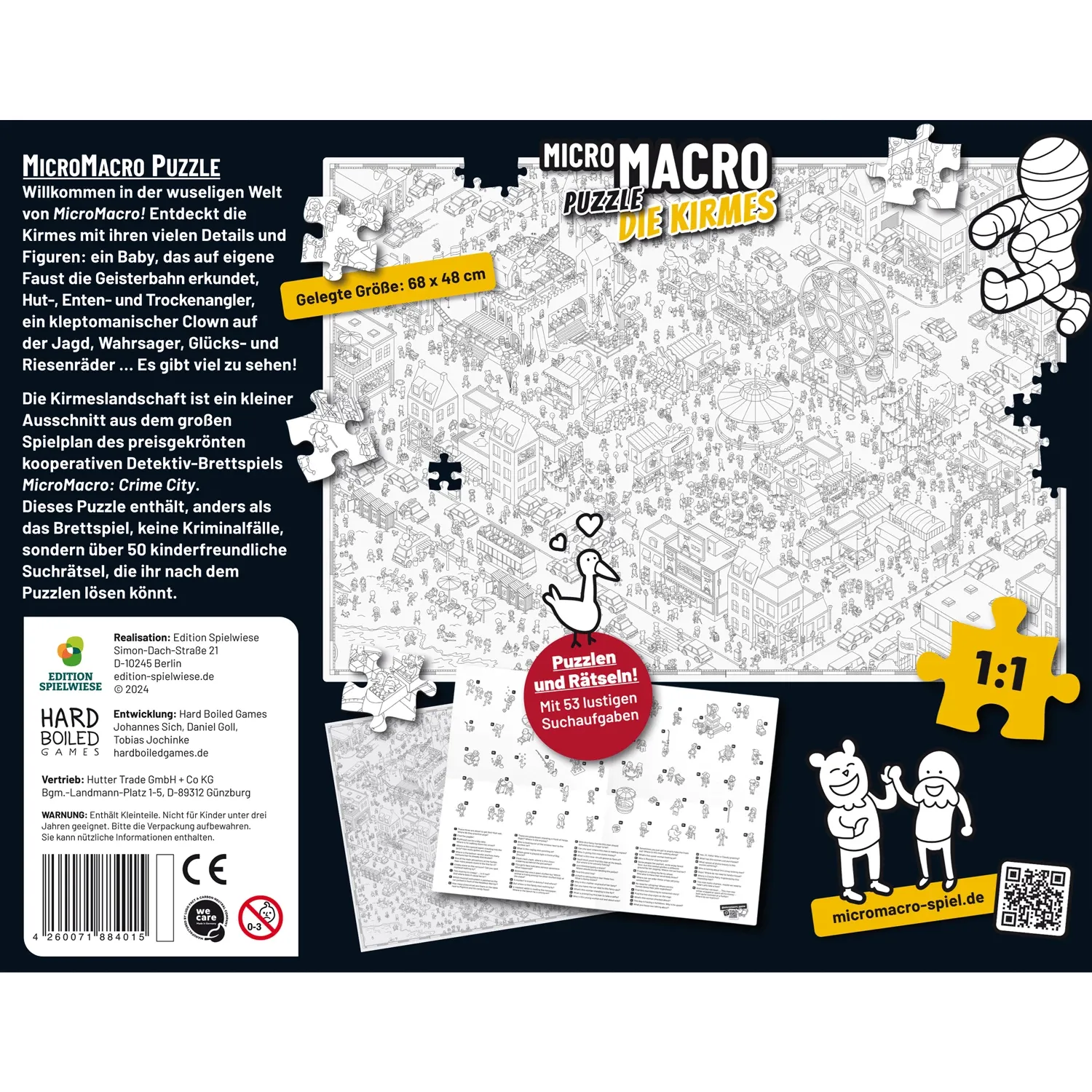 Willkommen in der wuseligen Welt von MicroMacro! Entdeckt die Kirmes mit ihren vielen Details und Figuren: ein Baby, das auf eigene Faust die Geisterbahn erkundet, Hut-, Enten- und Trockenangler, ein kleptomanischer Clown auf der Jagd, Wahrsager, Glücks- und R...