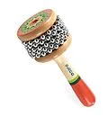 Eine hübsch gestaltete Cabassa. Wenn das Kind die Perlen auf dem gezahnten Metallteil dreht oder das Instrument schüttelt, entsteht ein Klang, der an eine Klapperschlange erinnert. Das perfekte Schlaginstrument für kleine Musiker:innen.
