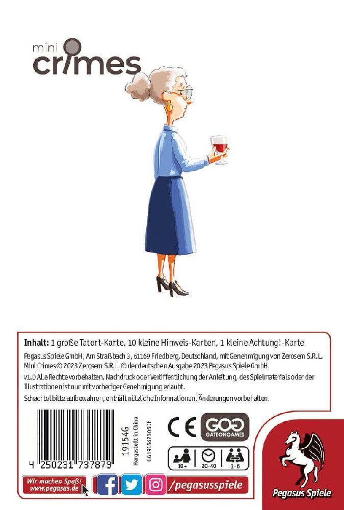 Die MiniCrimes Fälle sind kooperative Krimispiele, in denen die Spielenden ihre Beobachtungsgabe und ihre detektivischen Fähigkeiten unter Beweis stellen müssen, um einen mysteriösen Fall zu lösen. Sie untersuchen dabei den Tatort und bis zu 10 Hinweise, die s...
